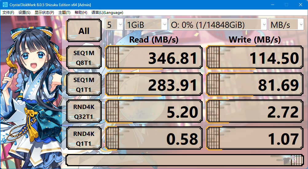 在奇偶校验模式下进行存储池测试,实测读取速度为 346.81MB/s,整体表现较为出色,能满足大多数日常办公与备份需求。写入速度则为 114.50MB/s,相对读取略低,属于奇偶校验结构下的正常表现。