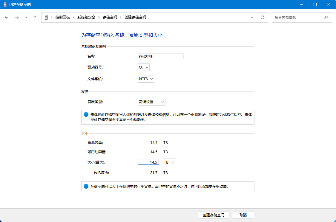 4、借助 Win11 存储池轻松构建 RAID,奇偶校验模式保障数据安全