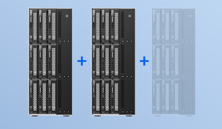 铁威马 D9-320 经过专属适配与调教后,可通过 USB 接口无缝连接至铁威马 NAS,在 TOS 4 系统中直接创建阵列与存储池,快速扩展 NAS 的存储容量。同时还支持多台 D9-320 并联接入,轻松构建大容量、高可靠的数据中心,满足企业级存储扩展需求。