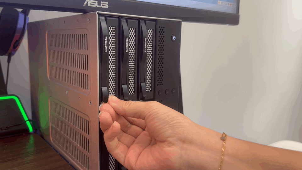 铁威马 D9-320 的独立电源开关设计带来另一个好处,用户可以只关闭某一个硬盘位的电源,就能安全地拔出对应硬盘进行更换或维护,无需每次都整机重启,大大提升了维护效率,也降低了设备损耗。