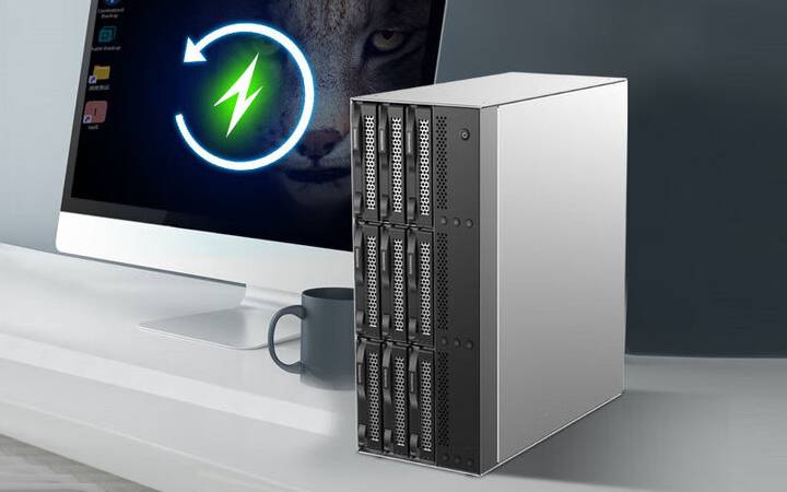 在供电方面,D9-320 选用了来自知名厂商台达电子的 250W 电源,为整机提供强劲且稳定的电流支持。D9-320 内置的电源管理模块还能与 UPS(不间断电源)系统配合使用,在突然断电的情况下保护数据不被破坏。 对于企业级或内容创作者这种高频读写场景来说,这样的电源配置无疑更具信心保障。