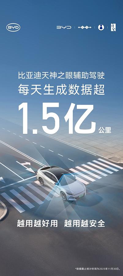 数据显示,截至2025年11月底,比亚迪搭载“天神之眼”驾驶辅助系统的车型累计销量已突破230万辆,持续蝉联中国辅助驾驶车型销量及系统装车量榜首。这标志着比亚迪推动的“全民智驾”战略已取得显著成效,智能驾驶正从高端配置加速向主流市场普及。