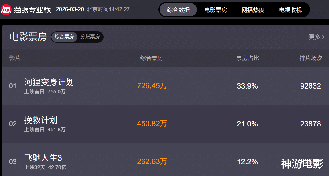 在这个并非大热档期的普通周五,《河狸变身计划》用实打实的数据证明了什么叫"爆款体质",也让之前稳坐钓鱼台的《飞驰人生3》和《镖人》等春节档老片,感受到了这只小河狸带来的"顶流"压力 。