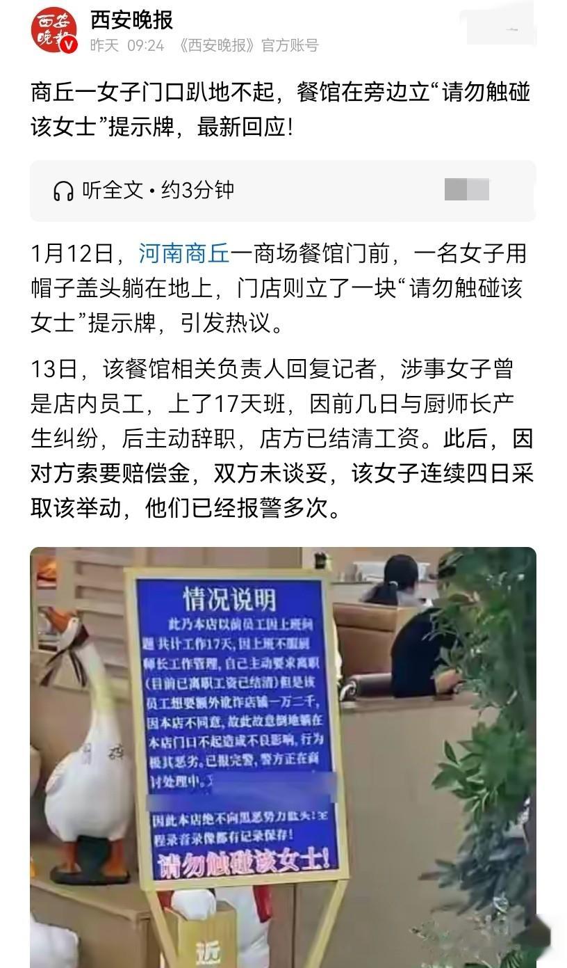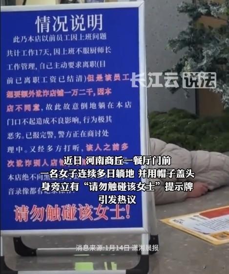 女子趴在餐厅门口,而且是从早趴到晚,倒不是因为身体原因,而是双方发生了经济上的纠纷。