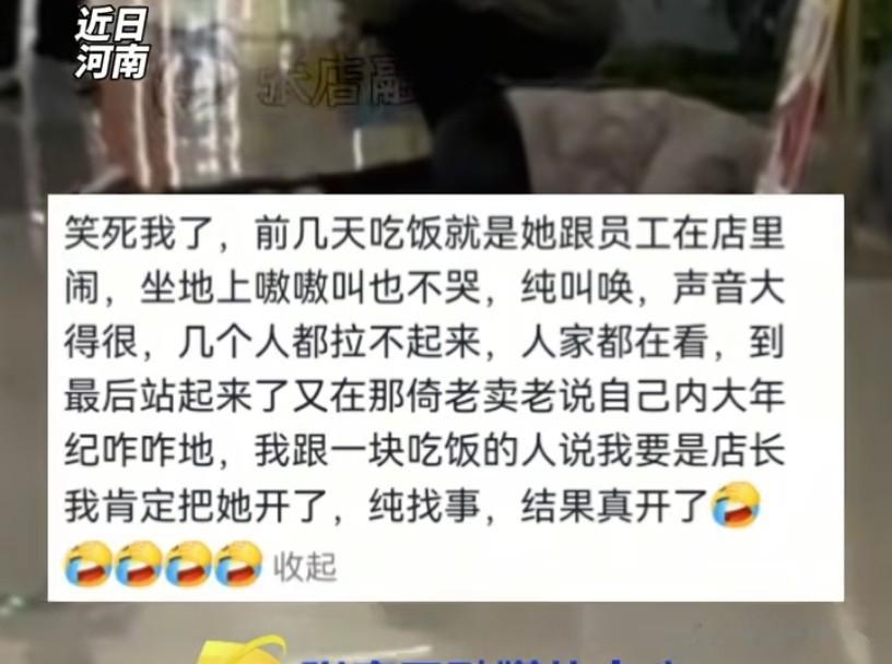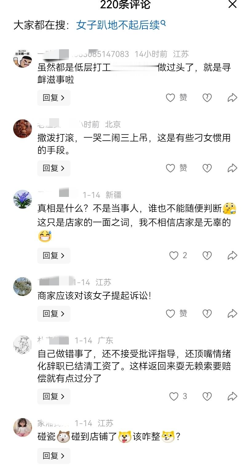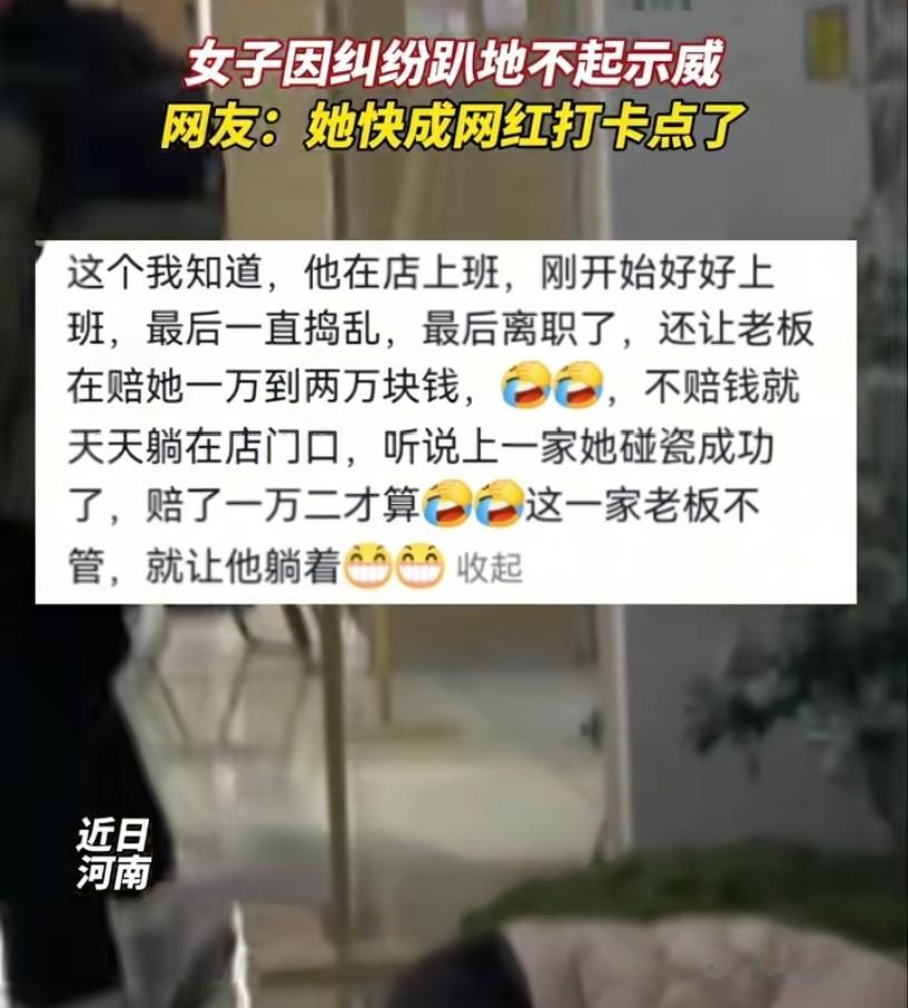 女子来索赔,店家不答应,后来才采取了这样偏过激的行为,先不说趴地上合不合适,但就女子索赔,个人认为需要当事双方一起坐下来谈。