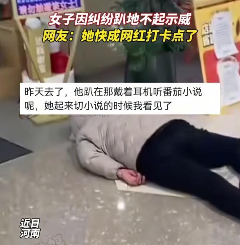 见满足不了自己的要求,女子一不做二不休,干脆就在店门口趴着,一趴就是连续四天,从早趴到晚上。