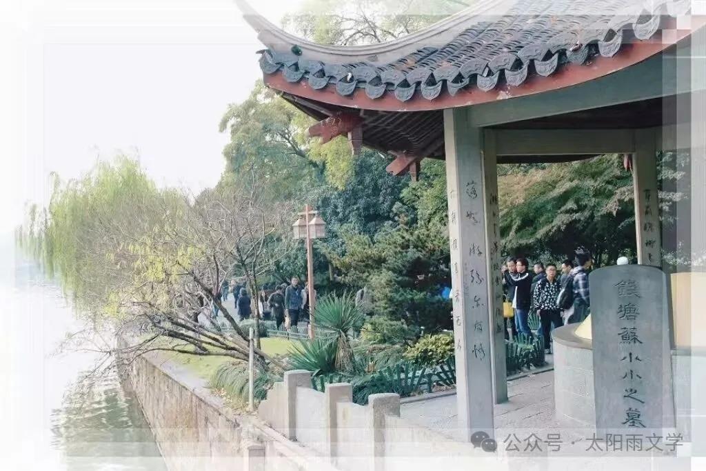 坐落于西湖岸边的苏小小墓,引得我静默驻足 。此时,仿佛看见苏小小从西泠桥畔款款而来,婉丽容颜,一襟荷香,带着期盼和忧伤。她心仪的阮郎,只能成为她生命里的一个梦。柳岸径下,将唯一的心事埋葬,最终歌断芳魂去,风过散沉香……
