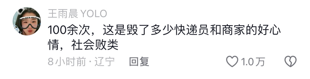 之前快递直接放在快递驿站或者快递柜,是多么方便的事情。大家一有空或者下班后就可以过去拿了。有的网友说,为什么人家顺丰就能做到送货上门这个服务!人家顺丰首重本地就已经12块了,别的快递在5到8块之间,自己想想吧。花最低的钱享受最高的待遇?那么以前能送现在为什么不能了?以前哪里有那么多驿站?人家快递员给你送货上门了,难道你要一直在家等吗?多多理解对方。