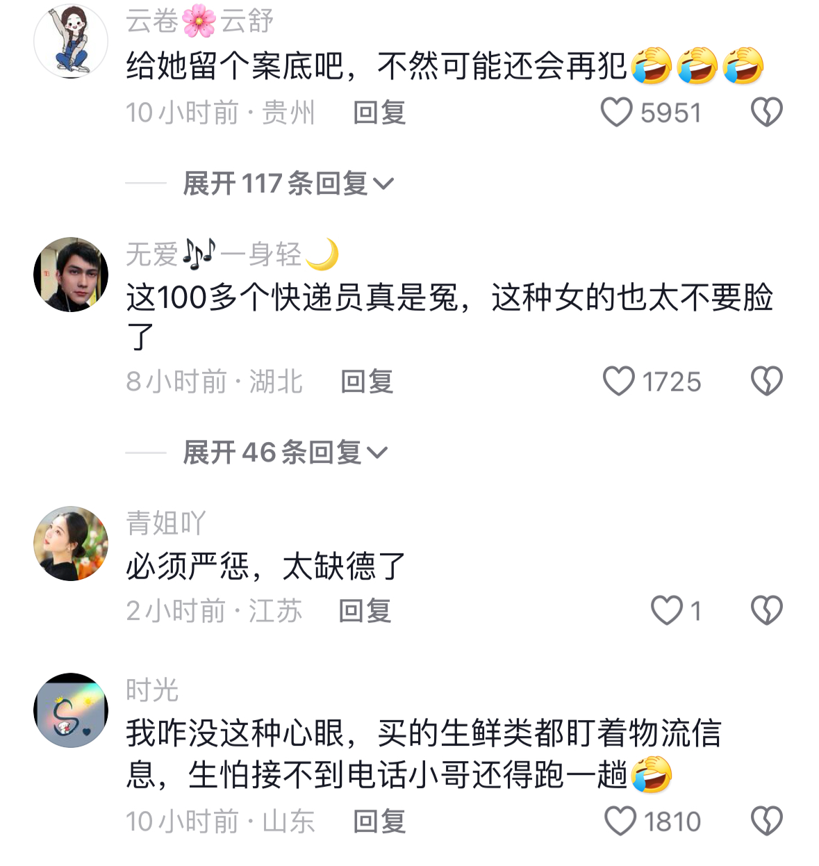 很多网友在评论区说到:就该给这女的判个几年刑。