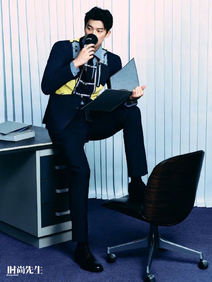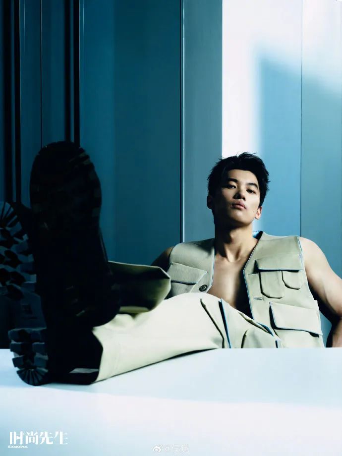 就算穿上衣服也是一样的帅气,给时尚杂志拍的照片,完全不输任何男星。