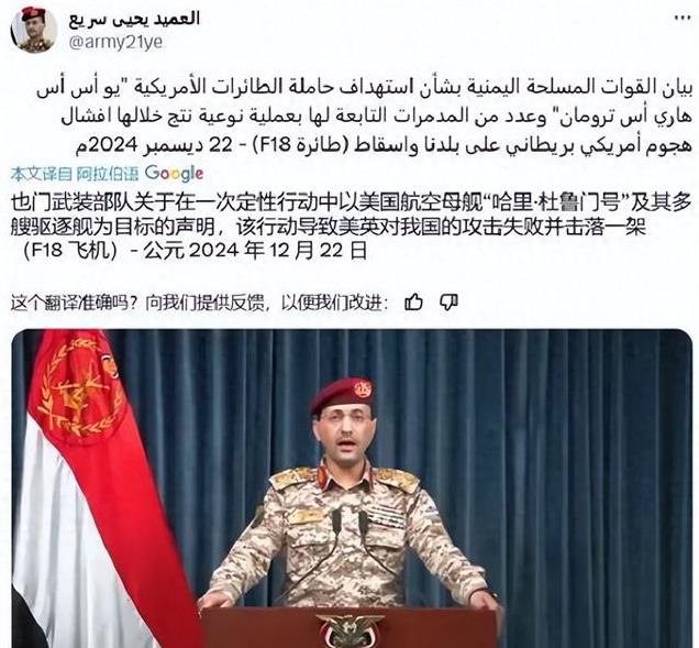 然而,无论过程如何,结果却是显而易见的:胡塞武装对美国航母发起了攻击,双方发生了交火,战机最终被击落。
