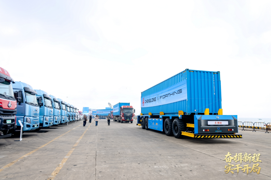 活动的最高潮出现在智能作业展示环节。在林长波总经理与胡华平董事长共同发布开工指令后,搭载自动驾驶系统的智能卡车缓缓启动,精准完成集装箱装载,与港口自动化桥吊协同作业,将集装箱平稳吊装上船。车与船的汽笛声在港口上空交响,这不仅是一场视觉震撼的科技展示,更是"汽车智造+港口物流"深度融合的生动实践。