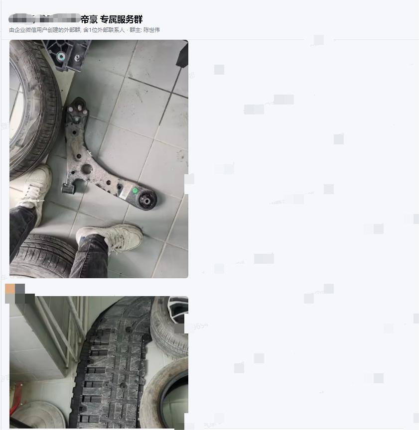 事故地点距离4S店较远,车主原本担心沟通与进度问题。然而,重庆力人吉利4S店全程通过服务群实时反馈维修进展,透明沟通、及时同步,让车主无需奔波即掌握爱车状态。经检查,车辆受损不轻:三条轮胎损坏、轮毂变形,悬挂系统也需更换调试。经过专业维修与精心调试,车辆最终恢复如初,几乎看不出事故痕迹。