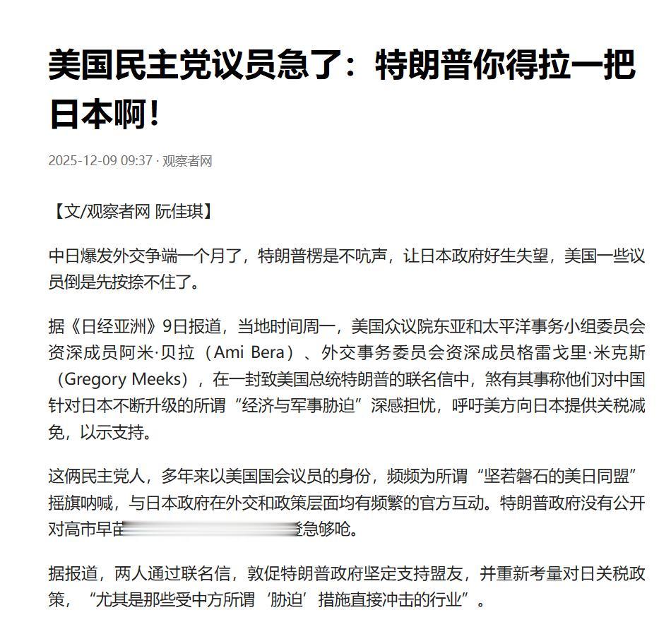 思来想去,日本觉得自己唯一能够倚靠的,也就只有美国了。据报道,高市早苗在发布不当言论后,曾多次敦促美国加大对日本的支持力度。