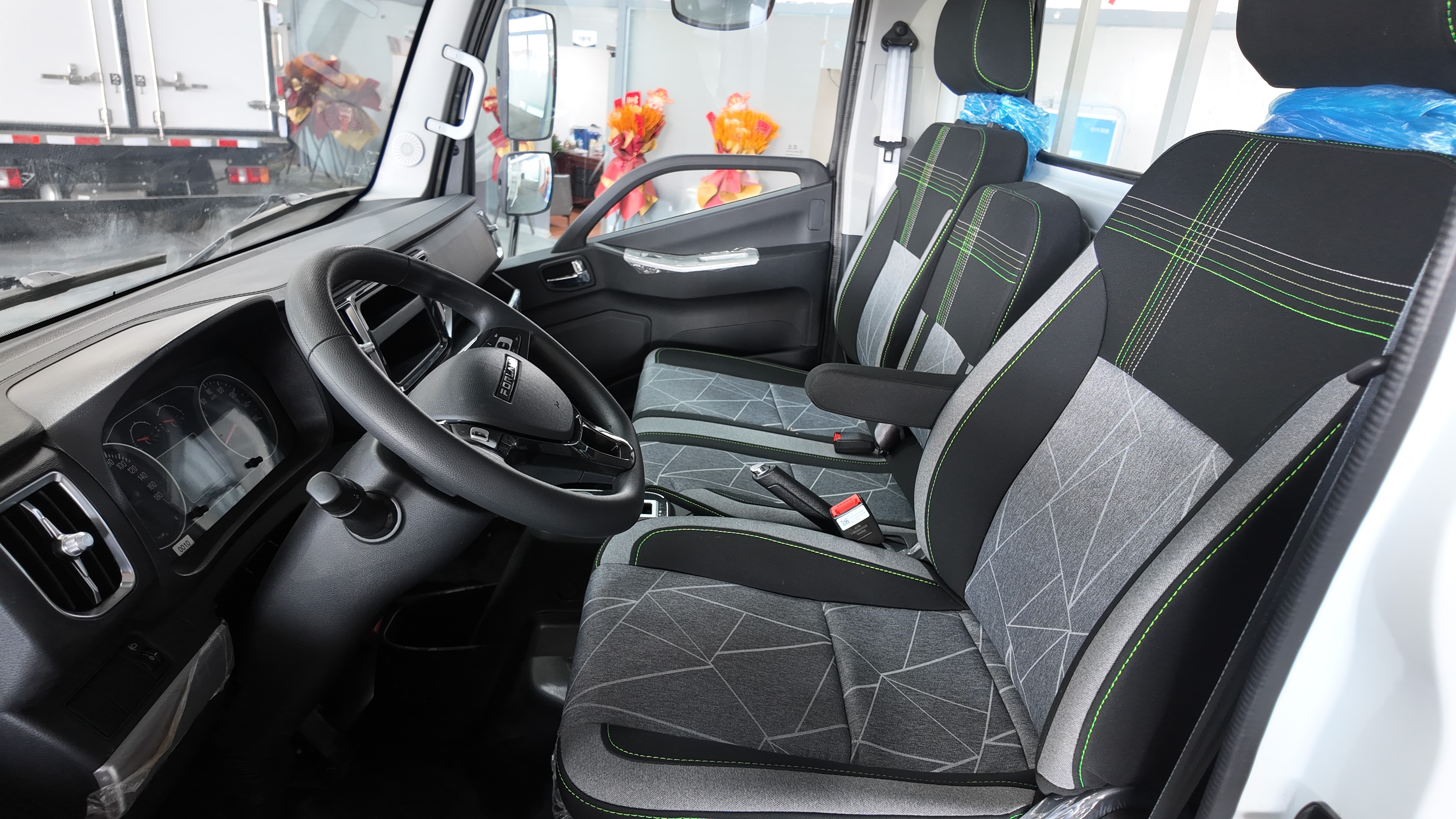 在配置方面,时代领航M5标载版纯电轻卡将实用与舒适融为一体。集成定速巡航的多功能方向盘,让高速与城郊路况驾驶更轻松;部分高配车型可选装大尺寸中控大屏与机械减震座椅,进一步提升驾乘质感。同时,整车经过专业NVH静谧调校,有效隔绝噪音,让长时间运营不再疲惫。