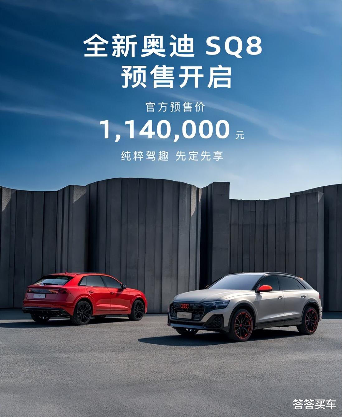 答答点评:奥迪SQ8是奥迪Q8的高性能版本,基于MLB Evo平台打造,卡宴、Urus、Q7等车型也出自该平台。2026款奥迪SQ8属中期改款,外观更趋运动化,灯光比老款更智能,激光远光灯照明范围更大、亮度也更强,车内将配备Bang&Olufsen音响系统与华格纳真皮超级运动座椅,内饰比老款更奢华。新车在国内的预售价为114 万元,银色车型是限量展车,目前没有出售计划!