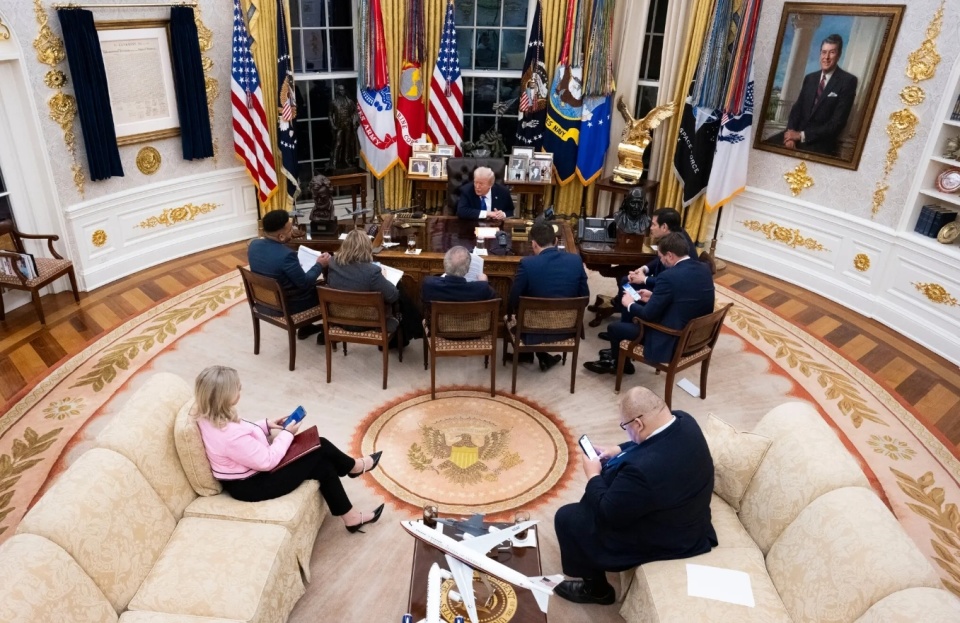 采访结束前,特朗普还自豪地展示了他翻新的“林肯浴室”,称其为使用了顶级大理石的“杰作”,并打趣地将西翼一间改造成礼品店的小房间称为“莫妮卡房间”。