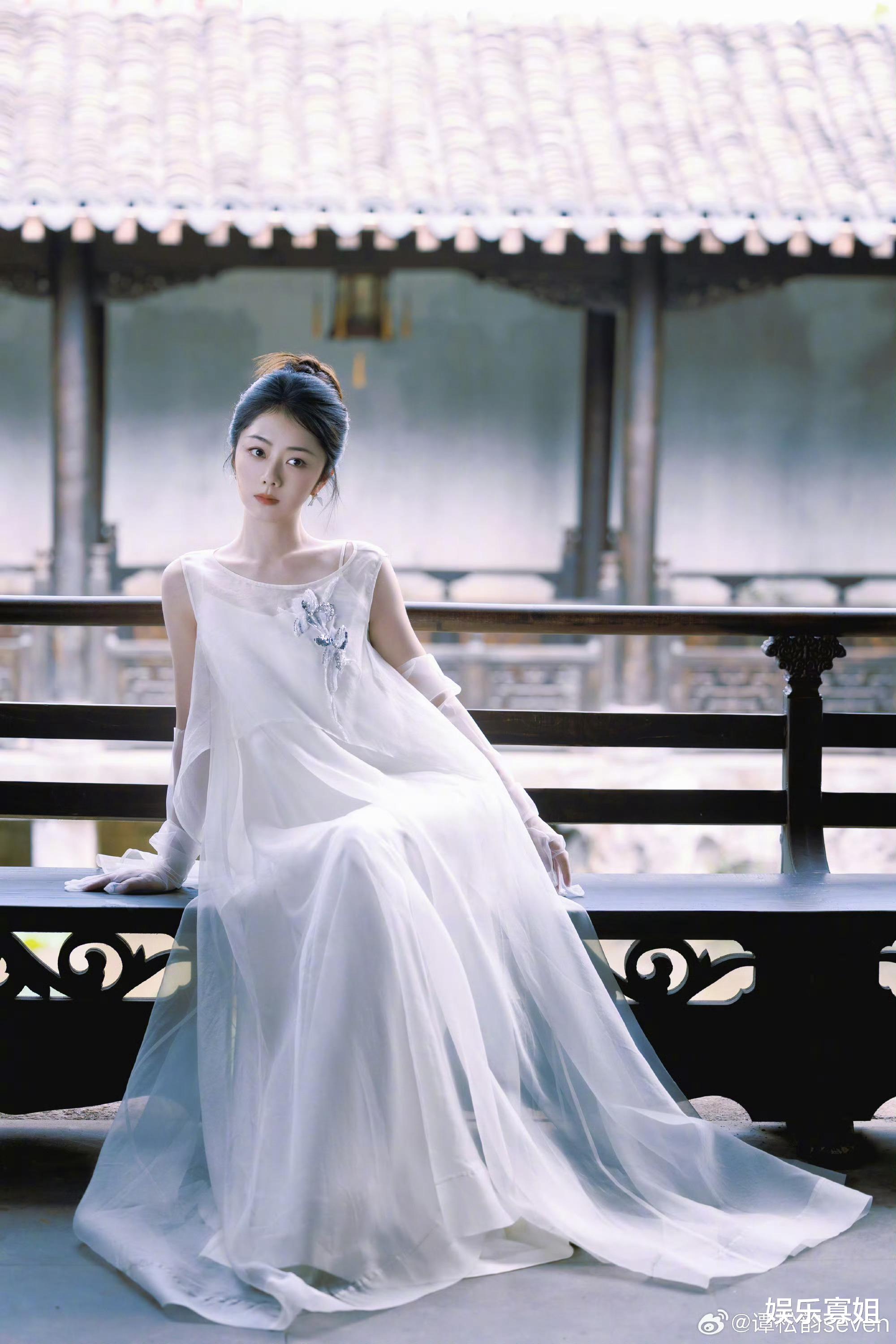 谭松韵最新妆造,一改往日甜美形象,清冷感拉满,获网友赞美,身穿新中式白色纱裙,搭配简约典雅的盘发,置身于青砖黛瓦的古典庭院中,或轻挥团扇、或倚树凝望......温婉中透着清冷,宛如从古代画卷中走出的清冷佳人,古韵十足,如月光洒兰草般沉静灵秀。