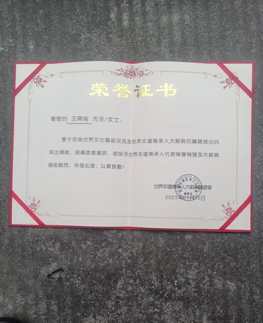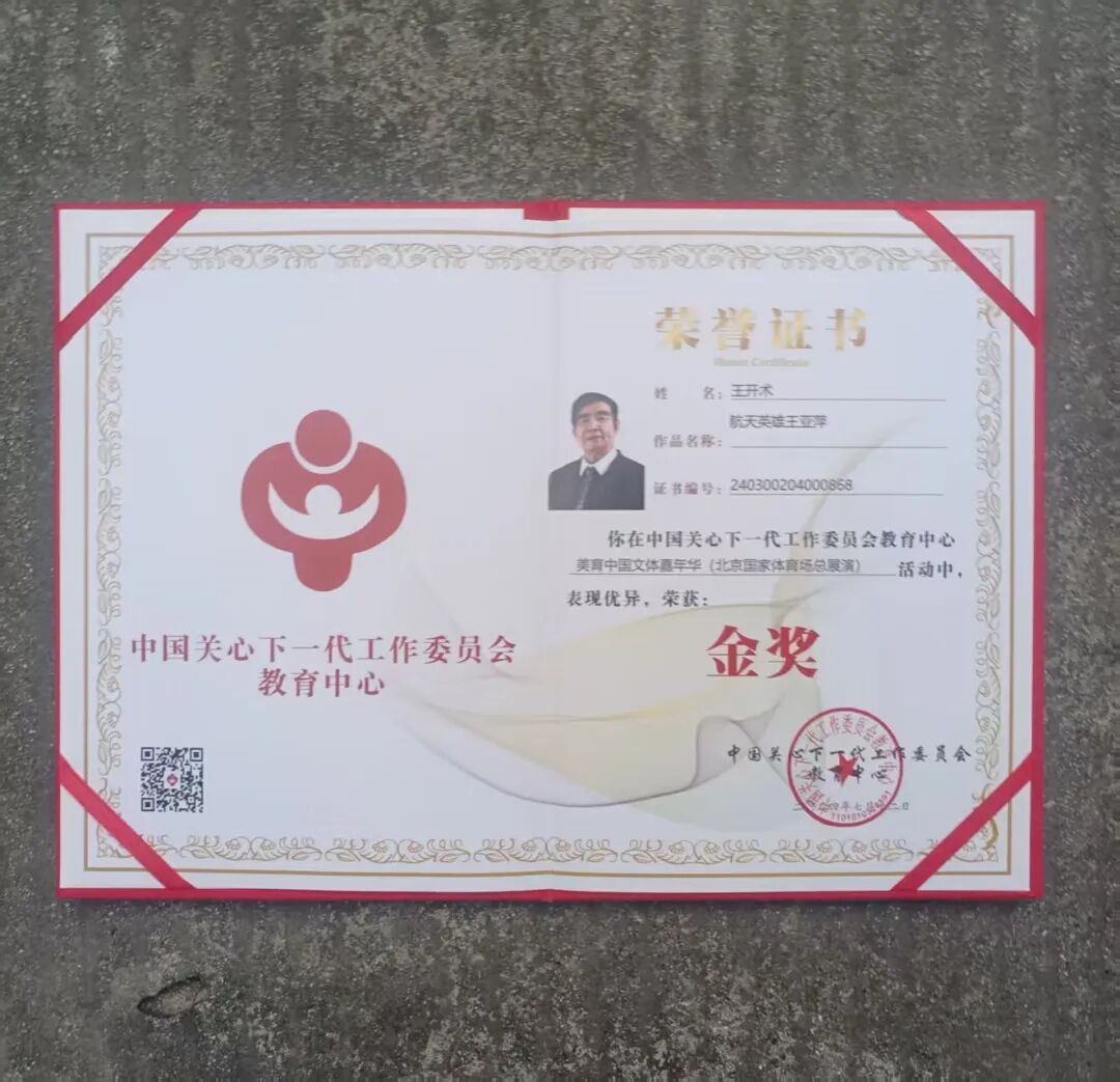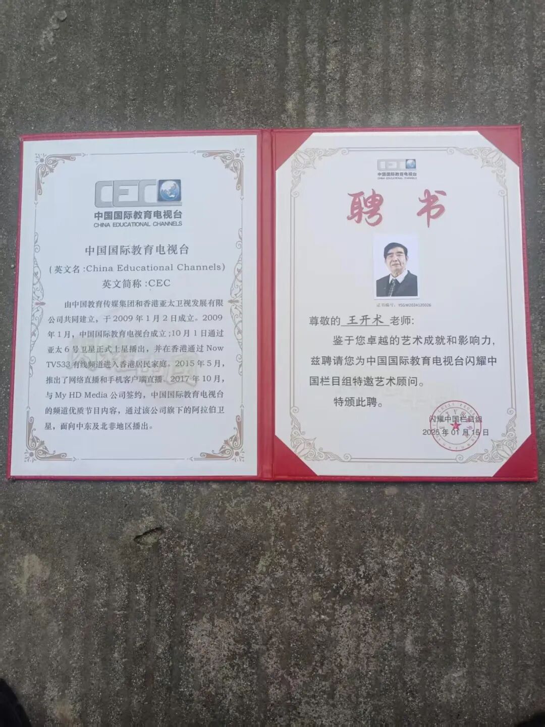王开术,男,籍贯四川三台县,现定居成都,任香港(中国)美术家协会终身名誉主席,亚洲文化首席艺术主席,中国国际教育电视台闪耀中国栏目组艺术顾问,中国画《习主席到凉山》《五位领袖》《航天英雄》等30多幅作品印制成邮票,中国画《航天英雄》《不尽的思念》两幅入选中共中央办公厅新中国成立75周年水晶《将军杯》国礼,作品四幅四次入选中南海专用瓷器国礼,入选2025年《全国人大,政协两会专刋王开术画册》,被授予《人民艺术家》《国宝级艺术大师一一王开术》《国礼艺术大师一一王开术》《新中国艺术大帅一一王开术》《当代艺术巨匠一一王开术》等荣誉称号。出版有《中国高等美术院校名师教学范本一一王开术人物画作品选》《走向世界的国礼艺术家一一著名国画家王开术》《走向世界艺术三大家一一王开术 何家英 孙晓云》等画册。 《航天英雄王亚平》获中国关公委教育中心《金奖》。获《2025达芬奇国际艺术奖《金奖》,入编2025《福布斯世界文化盛典金奖人物》杂志和获《金奖》,入编《胡润大师鉴宝名作》画册,获《胡润全球艺术金笔奖》