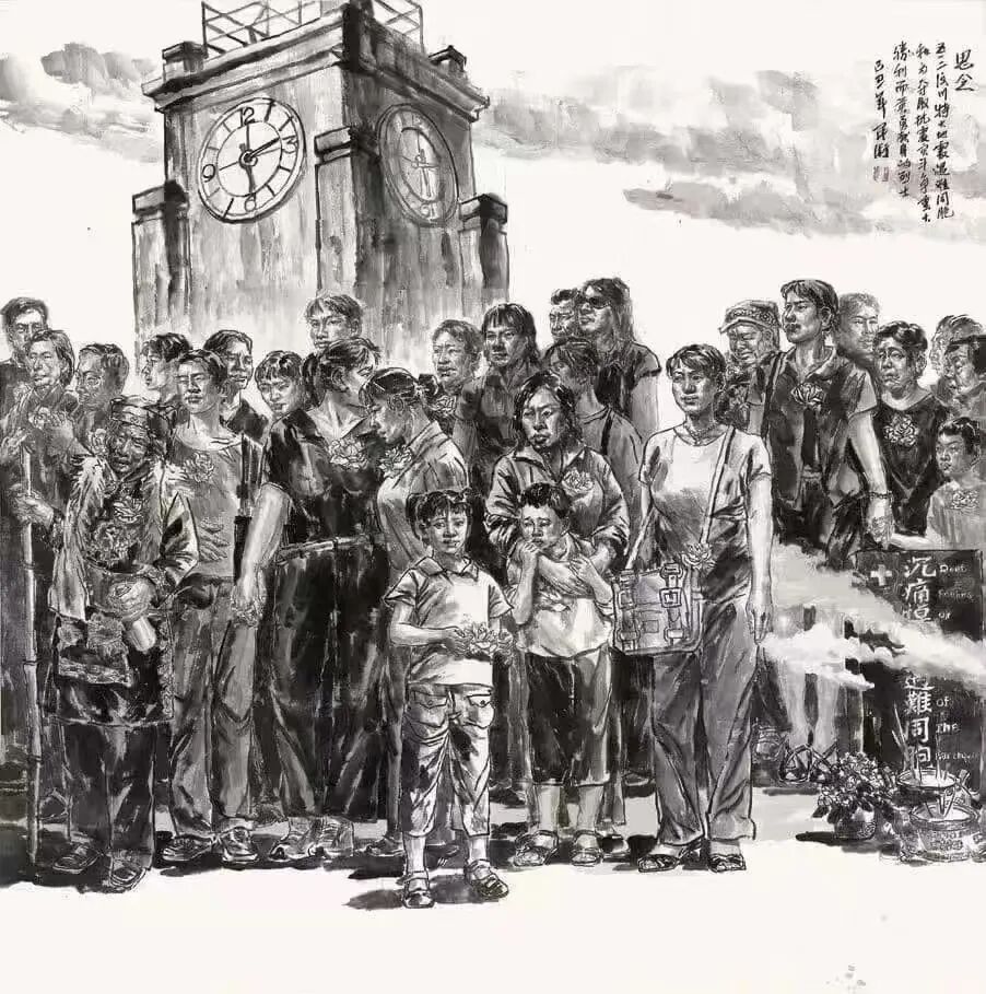 在《抗日烽火气如虹》《学者》等作品中,他以传统水墨的笔墨韵律塑造人物的体积感与神态,既保留了水墨“写”的灵动性,又通过细节刻画让人物形象更具时代真实感。这种探索,既避免了传统水墨人物“千人一面”的程式化,又未陷入西方写实的“形似”窠臼,实现了“形神兼备”的当代诠释。