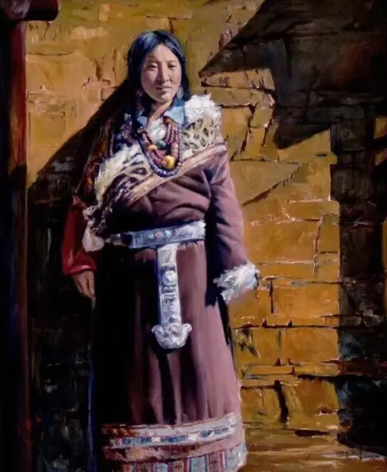 在油画创作中,王开术则着力于“油画本土化”的尝试,虽采用西方油画的写实技法与色彩体系,却传递出浓郁的中国审美意境——对人物精神世界的关注、对自然与人文和谐的追求,都暗合中国传统艺术的“气韵生动”与“天人合一”理念。他的油画并非对西方技法的简单挪用,而是将其转化为表达中国题材、中国情感的工具,让油画这一外来艺术形式在描绘中国少数民族风情、时代生活时,焕发出本土化的艺术生命力。