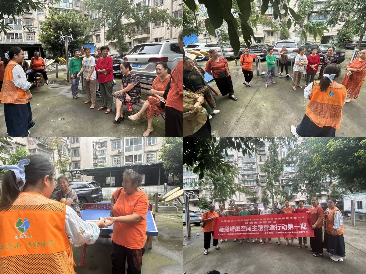 为了加强社区自治建设,满足居民多元需求,万家社区雁鹅塘小区A/E/C区院落微空间营建行动正全面实施,小区微空间活化,提升公共空间便利性与舒适度,激发居民参与社区建设的热情,激发与归属感、获得感,多元参与需要不断持续性推动,2025年8月31日-9月30日10:00-16:00,由万家社区2025年社区发展治理保障资金支持、成都市双流区九江街道万家社区居民委员会主办、成都市武侯区孝善社会服务中心执行的雁鹅塘小区营造项目,雁鹅塘微空间营建行动活动分三期在雁鹅塘小区A/C/E区院落开展,本次活动以“雁鹅塘爱家会”牵头,联动雁鹅塘小区居民共35人次参与。