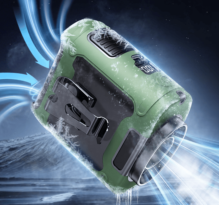 搭载10000mAh的大容量电池,支持5档风力调节。低档模式下可提供12小时以上的长时间续航,而高档则能应对高强度降温需求,非常适合全天候的户外活动或工作。5档风力设计让风速从轻柔微风到强劲大风都能精准调节,满足不同场景下的需求,且在中低档时噪音控制良好,不会打扰周围环境。