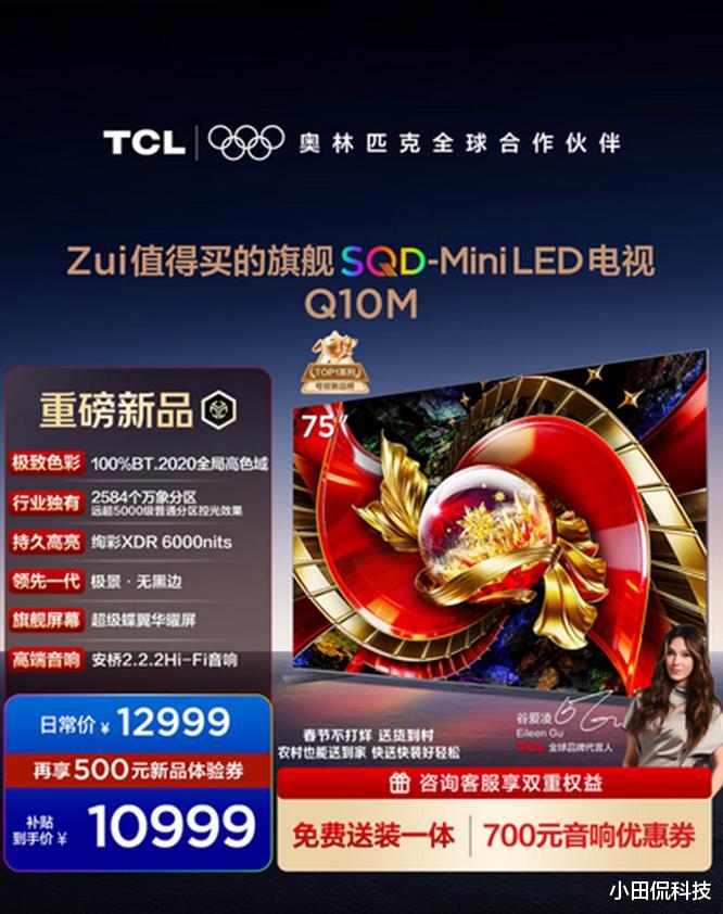 TCL Q10M以高性价比为核心卖点,成为日常观影用户的实惠之选,75吋国补后10999元的价格,在高端机型中具备价格优势。