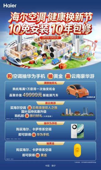 凡是购买海尔&卡萨帝空调即可参与抽新能源小汽车、抽黄金、抽华为手机、抽云南豪华双人游!买台空调说不定能把车+手机+黄金+旅游一次性安排到位,2026年幸运鹅非你莫属!