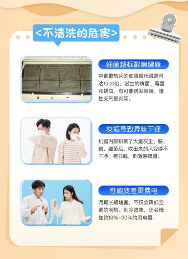 天气越来越热,家里的空调又派上用场了,可是很多空调用了好几年,过滤网已经积满了灰尘,蒸发器上也堆满了霉菌,脏空调一打开,