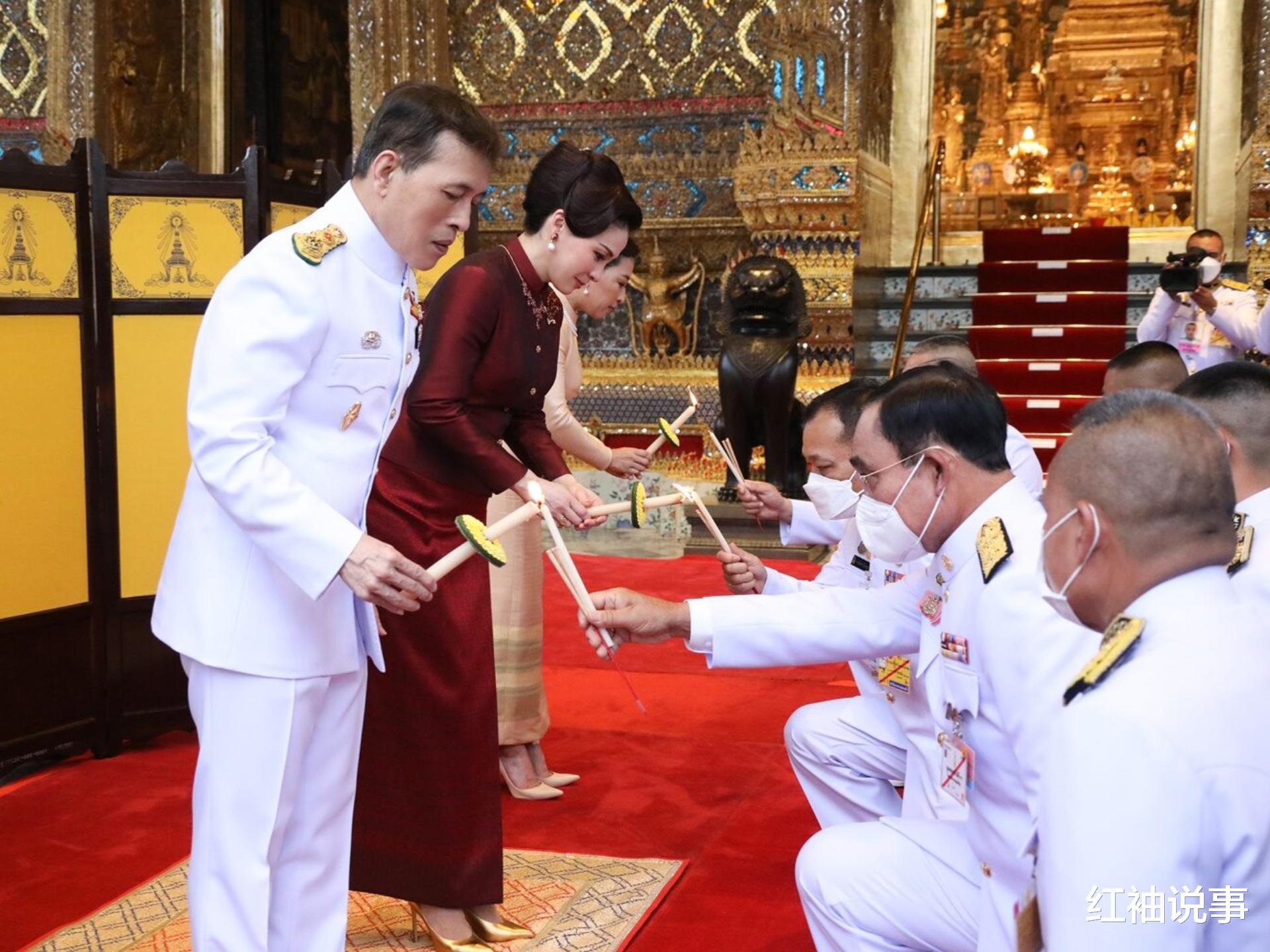 泰王这回可算是把真面目露出来了!带着小妾那叫一个风光无限地亮相,压根儿就没把苏提达的感受当回事儿。别看泰国帝后平时在镜头前装得那叫一个恩爱,实际上啊,两人早就同床异梦啦!表面上和和气气,背后却因为各种利益闹得不可开交,这关系早就分崩离析咯!