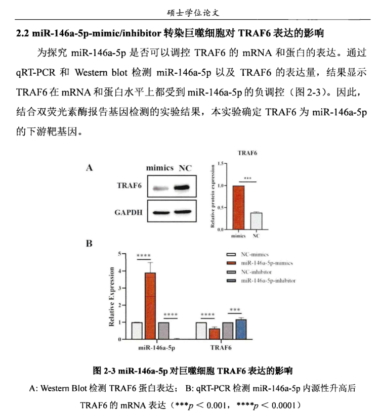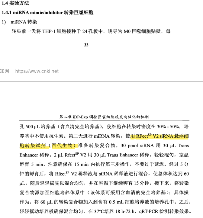 南方医科大学研究者在炎性牙髓干细胞外泌体调控巨噬细胞抗炎向极化的机制研究中,使用RFectSP V2 siRNA悬浮细胞转染试剂成功将 miR-146a-5p mimic/inhibitor转染到巨噬细胞THP-1中,qRT-PCR检测结果显示,转染后,与NC-mimics组相比,miR-146a-5p-mimics组的miR-146a-5p表达水平显著上调4倍;与NC-inhibitor组相比,miR-146a-5p-inhibitor组的miR-146a-5p表达水平显著降低95%以上!