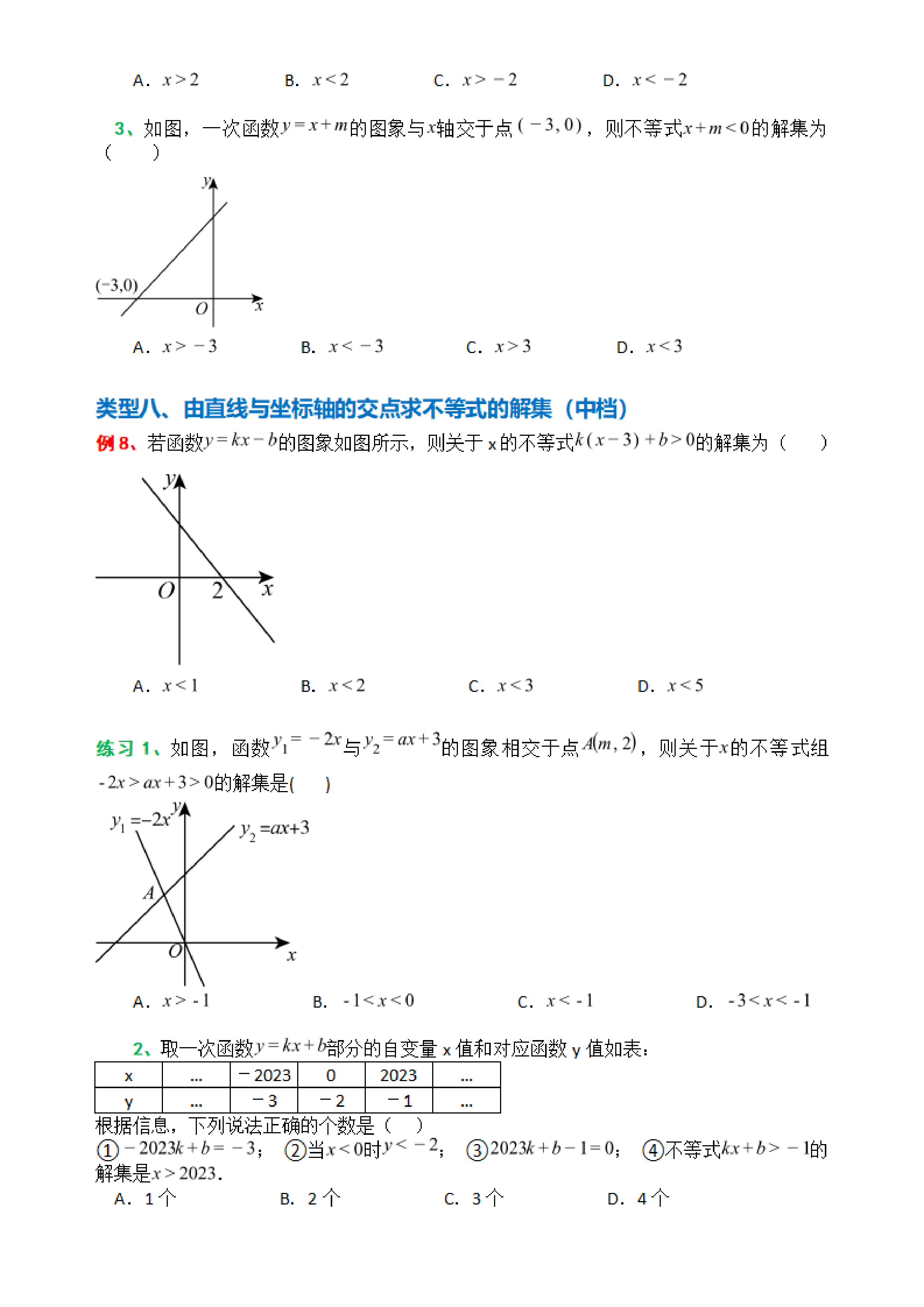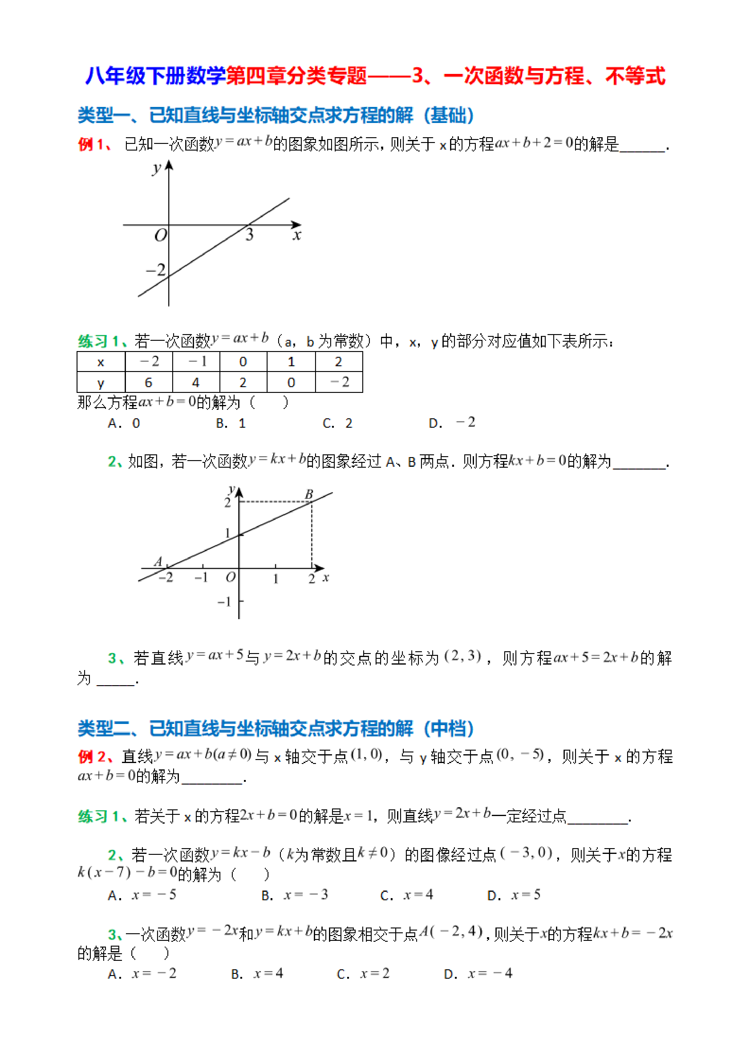 类型一、已知直线与坐标轴交点求方程的解(基础)
