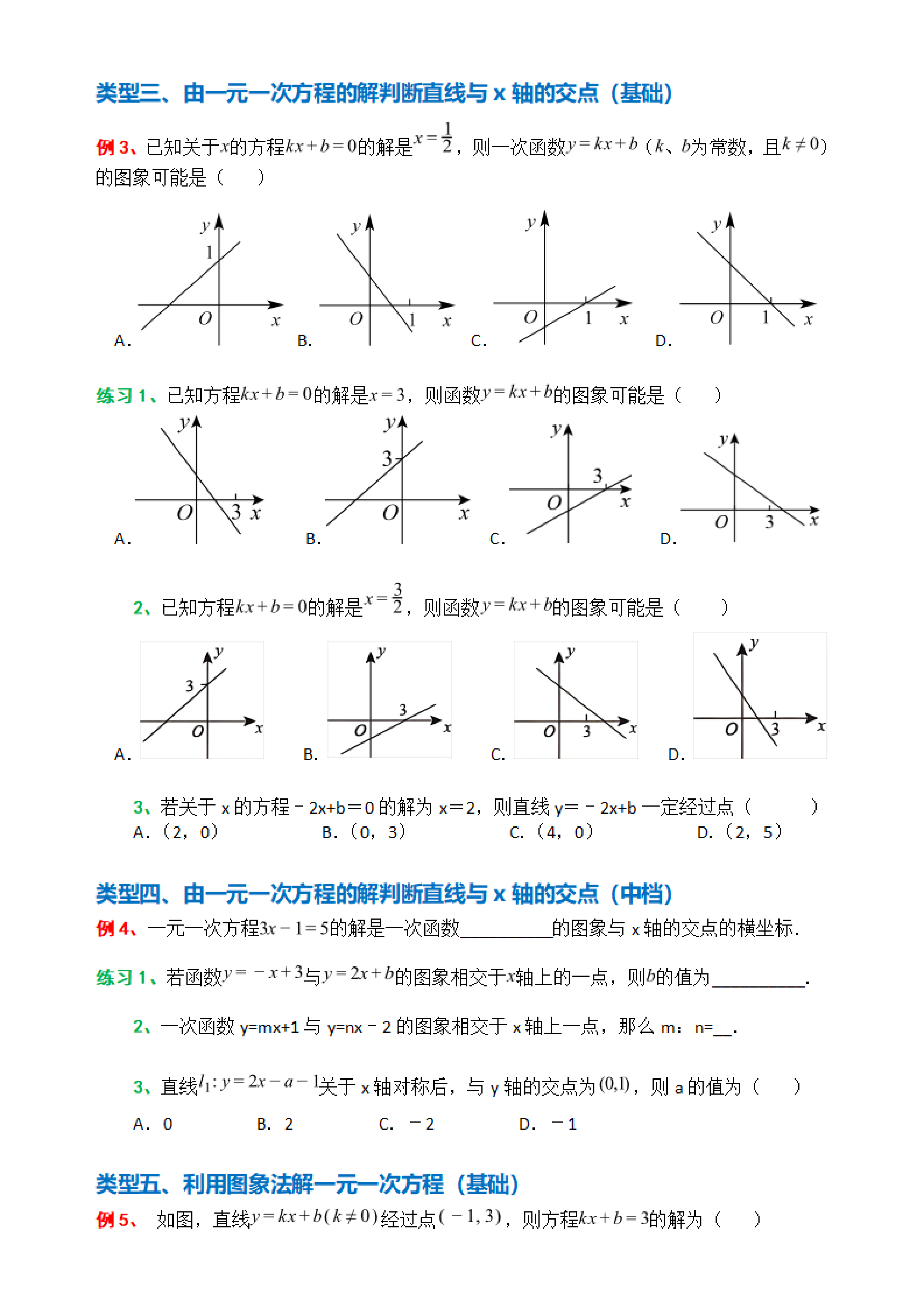 类型三、由一元一次方程的解判断直线与x轴的交点(基础)