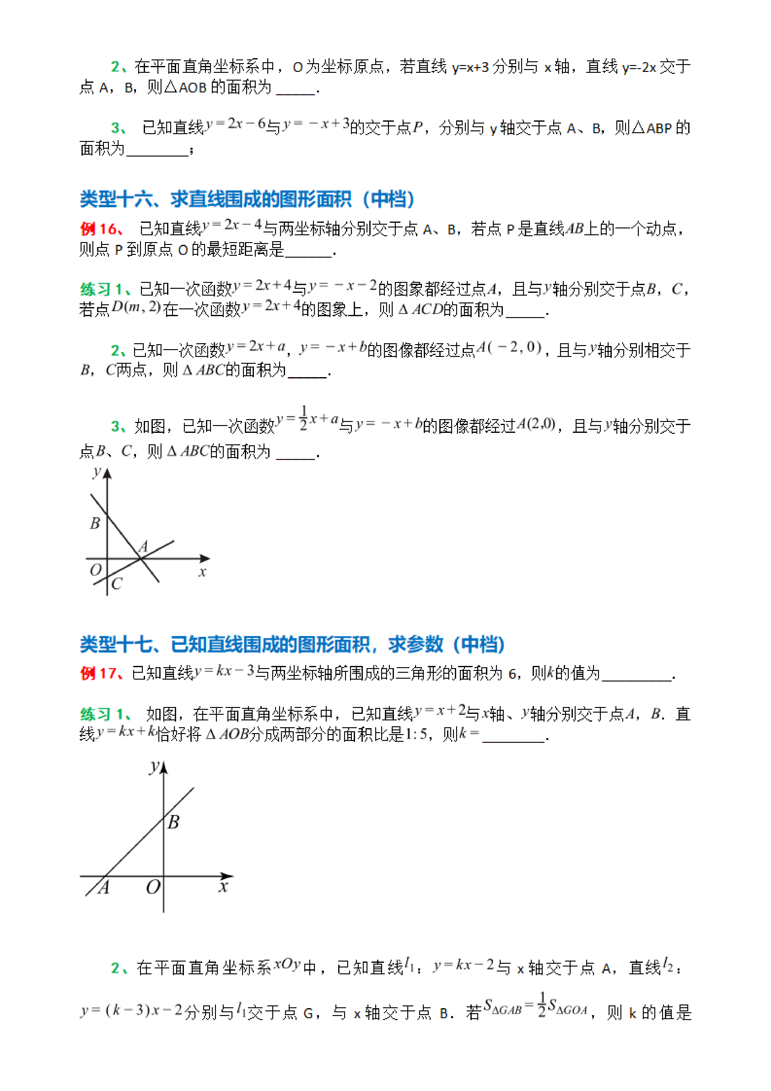 A. B. C. D.八下数学第四章分类专题—2、一次函数43类