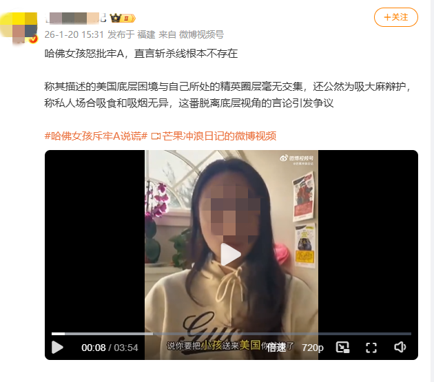 一位哈佛女孩发视频说,牢A描述的美国惨状不存在,至少是离她的生活太遥远了,她没有见到过。