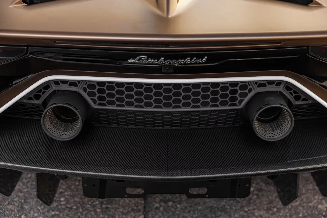 这款车采用了一种叫做Bronzo Zenas的哑光古铜色涂装,搭配裸露的碳纤维组件和亮面黑色车顶,形成了鲜明的对比。