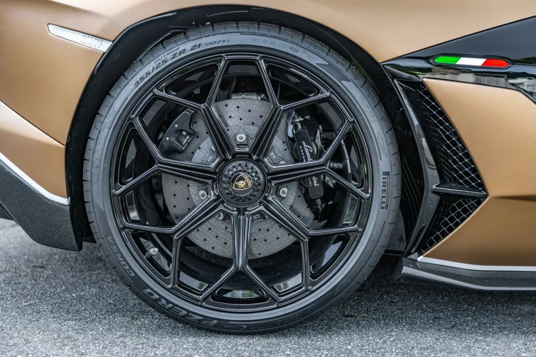 这款车还配备了前20英寸和后21英寸的Y型辐条合金轮毂,表面采用亮黑色处理,搭载碳陶制动系统,并且配备了倍耐力P Zero轮胎。其它设备还包括空调、可切换的驾驶模式、卫星导航、一键启动按钮,以及非常实用的前悬挂升降系统。
