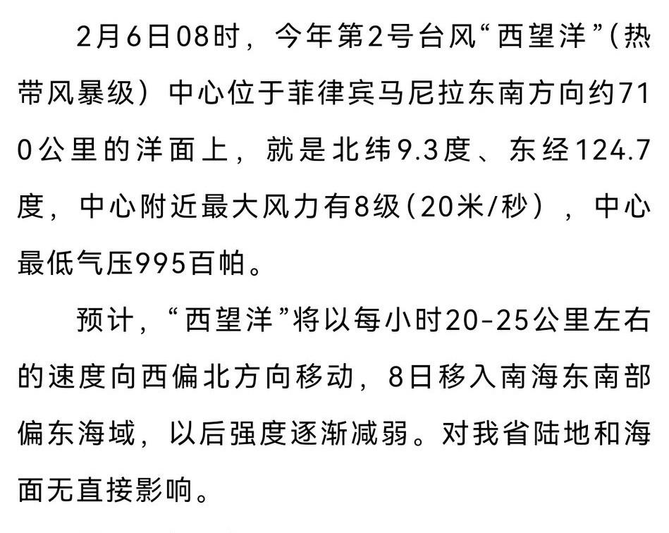 今年第2号台风“西望洋”