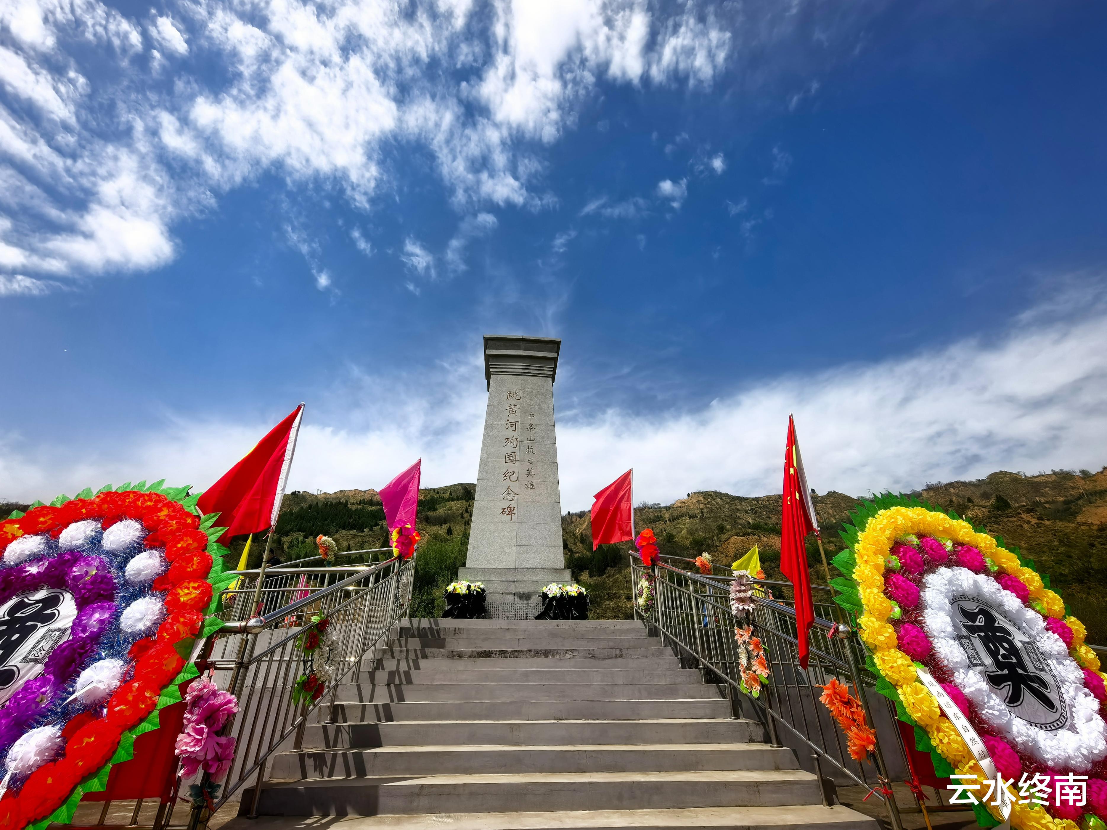 高大的中条山抗日英雄跳黄河殉国纪念碑,在黄河断崖下矗立,我缓步上前。