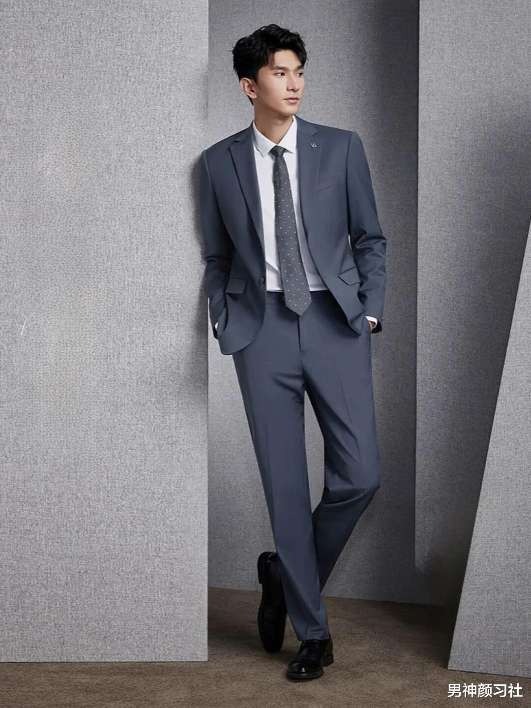如果你想以最惊艳的方式出现,不妨试试一身蓝灰色西装。内搭纯白衬衫,系上精致的领带,绅士感满满。