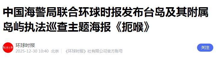中国不再克制,要强行扣留运抵台岛的军火?12月30日,中国海警突然抛出一张意味深长的海报,名字就叫《扼喉》。