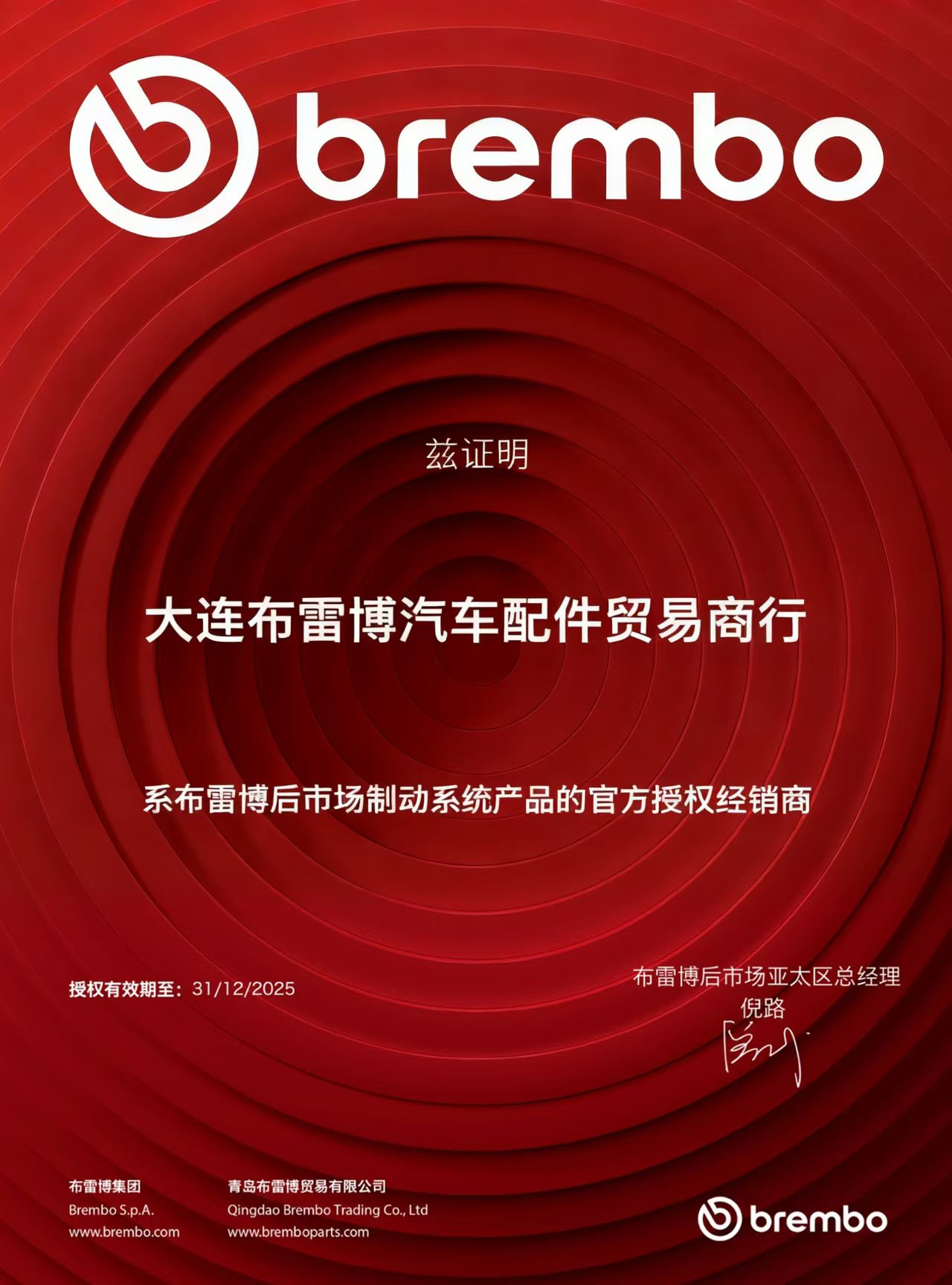 技术服务能力:设立 “Brembo 中国技术中心”,可提供产品适配咨询、安装调试指导及故障诊断服务,曾获 Brembo 美国 RT 高级客户经理现场授证认可。