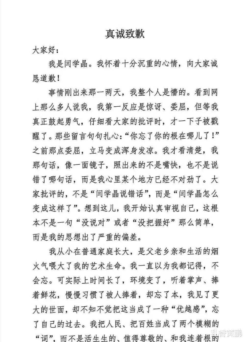 闫学晶这封道歉信,写的很好,精准把握了公众情绪,用极具乡土气息的词语,强化身份认同,与大众共情。