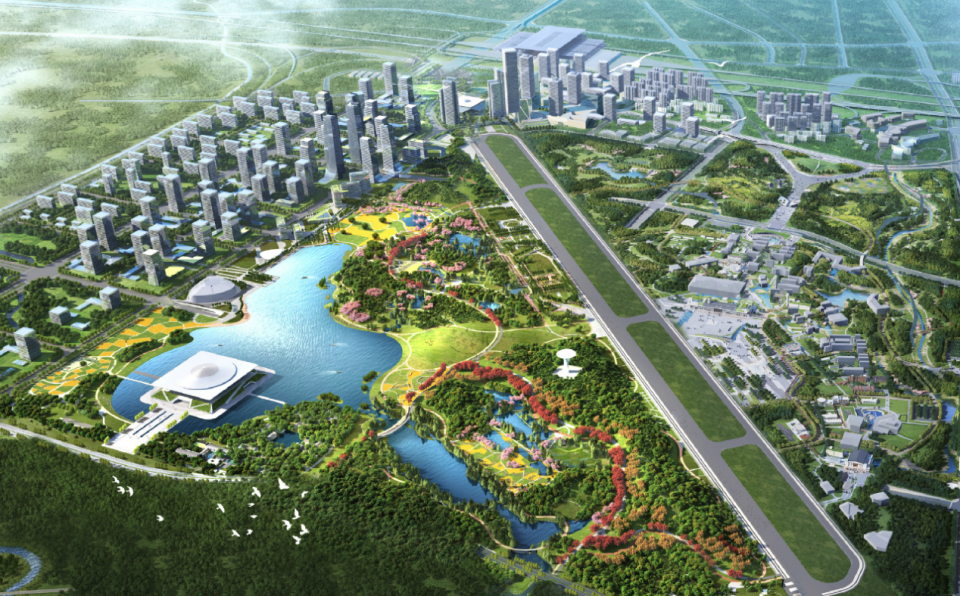 根据此前的招标公告,公园规划范围东至机场跑道南侧,南至黄河路,西至青海路,重点打造森林花溪、量子塔、秀湖天地三大功能板块。东岸布局五星级酒店锦苑,西岸规划配套图书馆、音乐厅等公共文化载体。