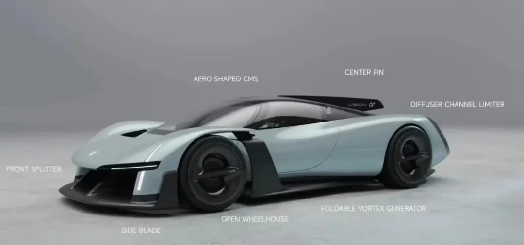 小米 Vision GT 整车采用自然风雕刻的极简设计理念,车身上的每一个线条和开孔都具备真实的空气动力学功能,没有任何纯粹服务于视觉审美的多余部件。从侧面观察车身,驾驶舱呈现出悬浮的水滴状结构,外部气流可以直接越过车顶或穿过座舱下方的通道。底部的主动式扰流板会根据行驶状态实时调节风阻与下压力的平衡。