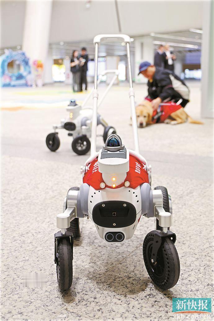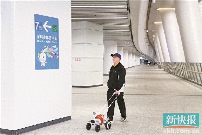 12月13日,深圳地铁首次试点启用智能导盲犬“小蒜”,以科技为视障人士地铁出行提供便利。图为在深圳地铁黄木岗交通枢纽,视