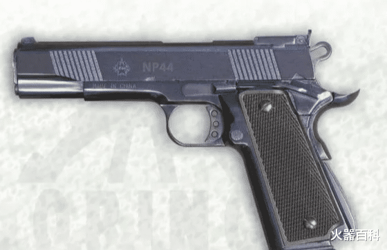 NP44型自动手枪仿制于柯尔特M1911A1自动手枪,但是采用了双排弹匣,容弹量14+1发