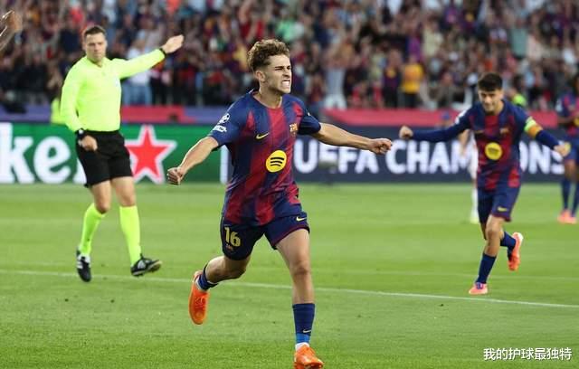 亚马尔右路独闯龙潭,禁区内被奥林匹亚科斯门将干扰,不过费尔明黄雀在后,冷静推射将球打进,1-0!