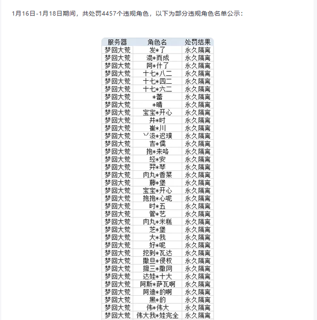当然大家也不用担心游戏会有工作室或者各类脚本账号来影响市场和价格,因为游戏官方非常注重游戏的生态,从开服到现在短短十来天的时间便接连出手处罚了大量的违规角色以确保玩家们的权益。在确保玩家们能有愉快体验的同时,也能让广大搬砖党们拥有相对稳定的收益。